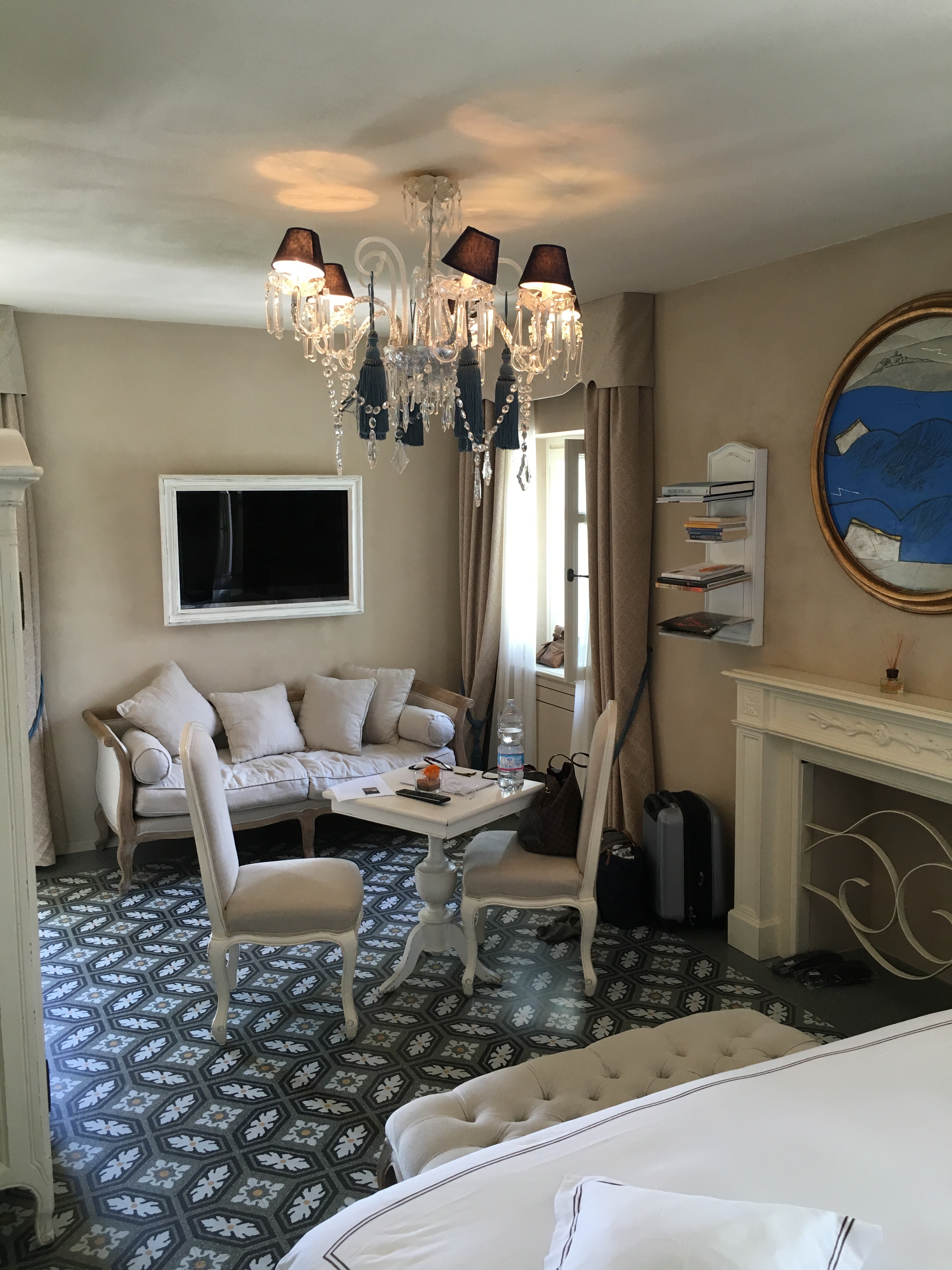 The room was as lovely as I could have wished for.  This is not a modern hotel with all the bells and whistles but rather a classic Italian gem with crisp white walls, beautiful tiles, luxurious linens and a bed that makes it difficult to get up for breakfast.