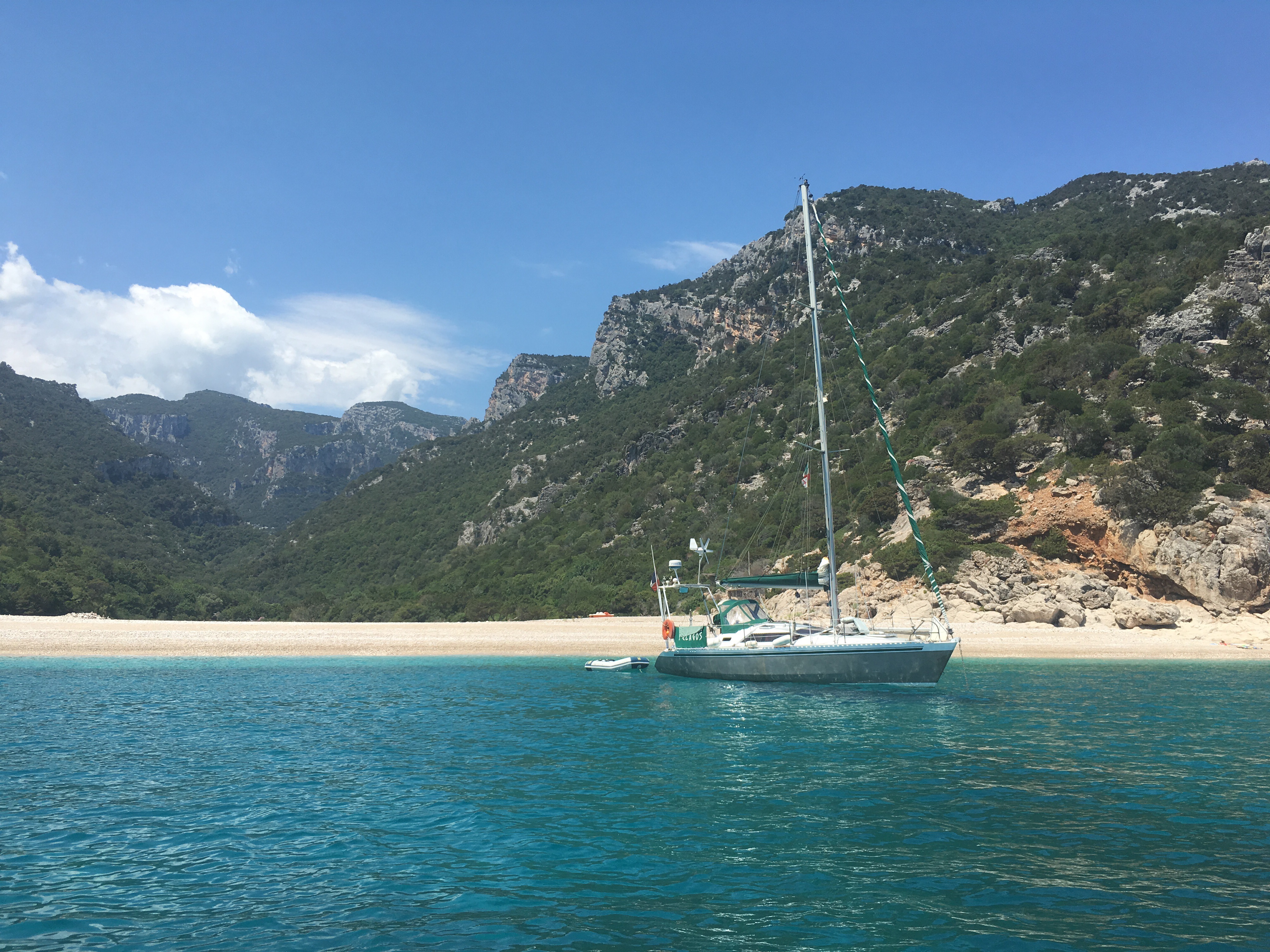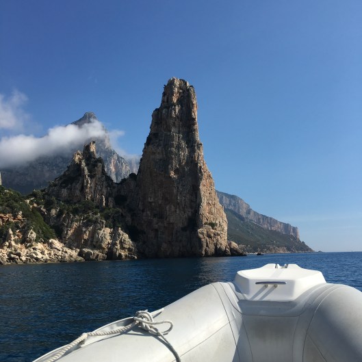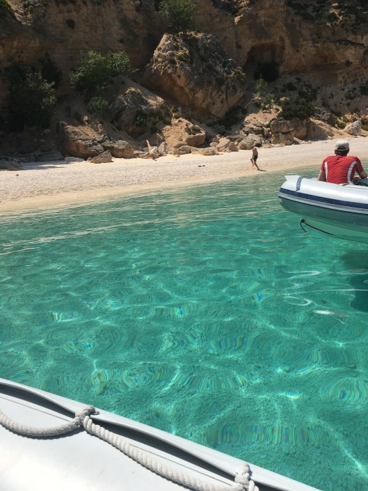 My wildest dream didn’t include a zodiac with a private skipper zipping up the Orosei Coast but that’s what our reality was!  Laurel and I hired a boat for the whole day at the little port in Santa Maria Navaresse on the Island of Sardenga – complete with a skipper ready to meet our every whim and to share his intimate knowledge of the area given he had spent his life here on the water.