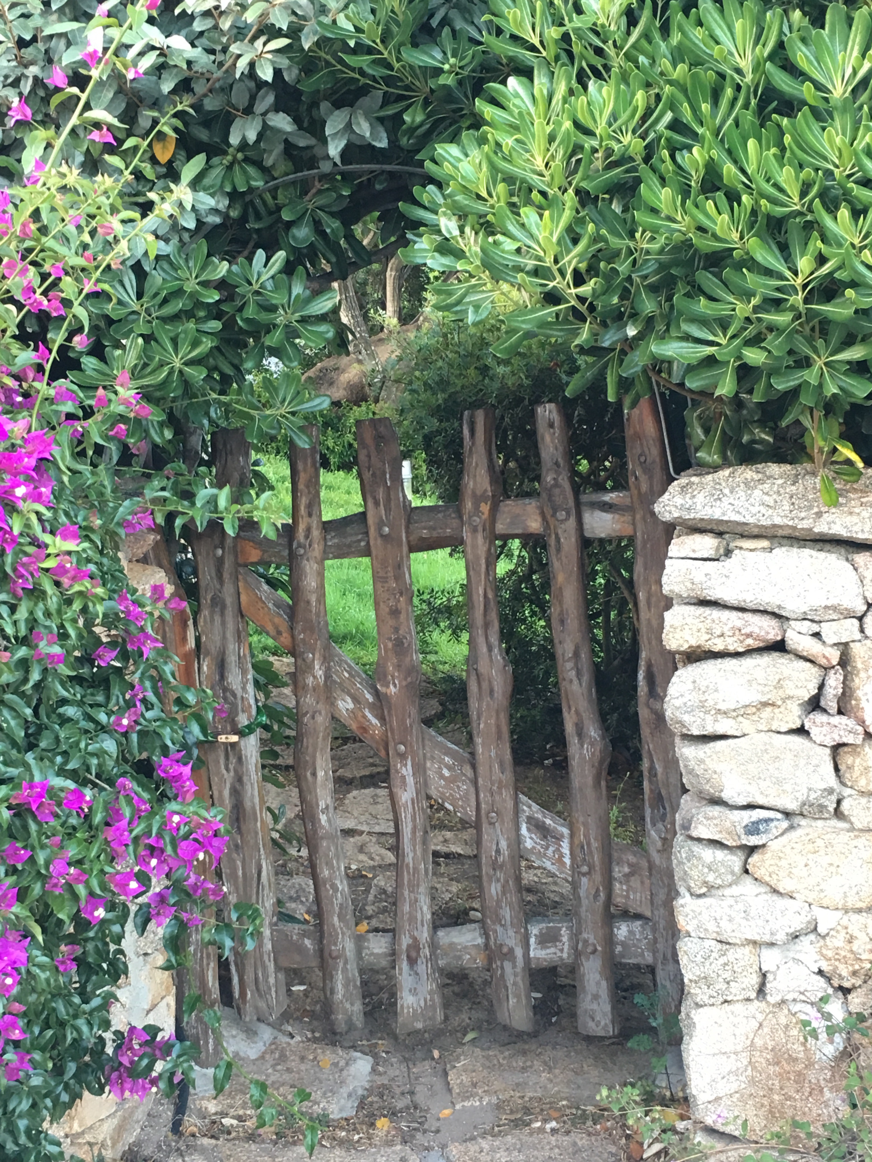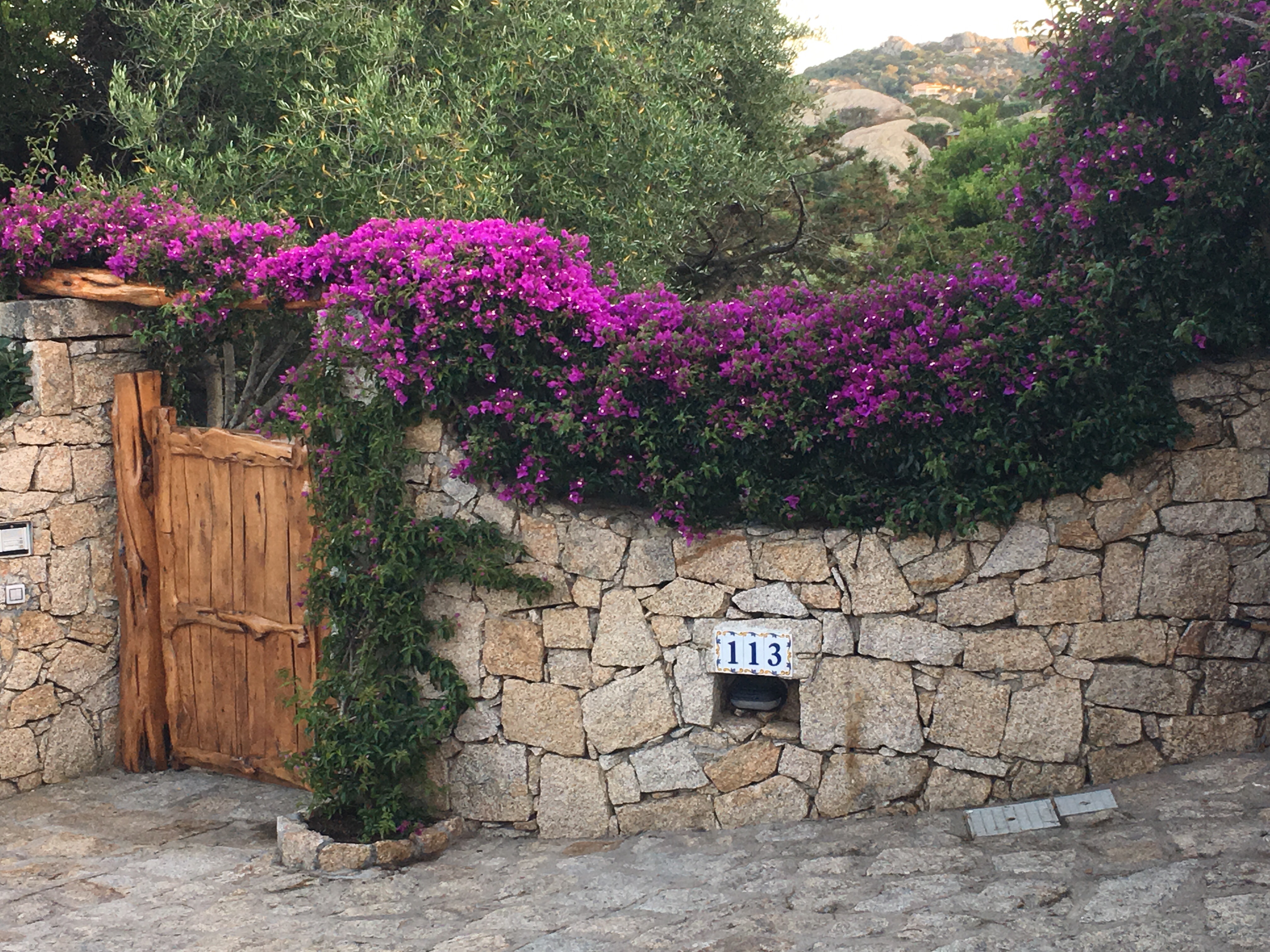 In keeping with the residents desire to build a community that is safe, protects privacy, and maintains a quiet atmosphere there are no street names and few house numbers in the 150 hectares. Unbelievable! There are low stone walls, inviting wooden gates and stunning Bougainville everywhere.